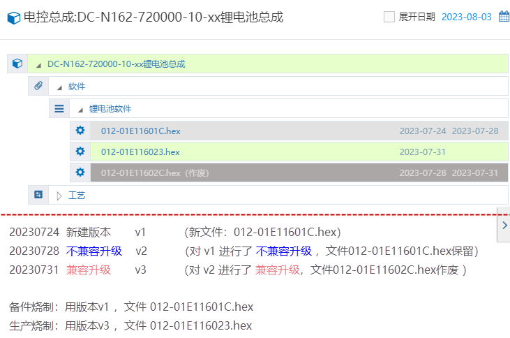 Mobox關于對數據版本的討論 2023/08/03 分類:產品中心 低代碼 實施方案 786 Mobox數據對象,是可以進行版本管控的,關于版本設置 兼容升級: 這個電控軟件 原先的版本被廢棄,直接采用當前新的版本 不兼容升級:這個新版本,只能在當前生產的電控總成里面用,以前的老的電控總成 是不能安裝到這個新電控軟件的;? 以前的電控總成將成為 備件燒制; 效果圖: 我們可以看到 v1 他是有時效性的,有效期到 20230728 標簽:低代碼方案 上一篇: Mobox低代碼(WMS)關于入庫作業流程的思考 下一篇: mogodb數據庫端口外網偵測不到