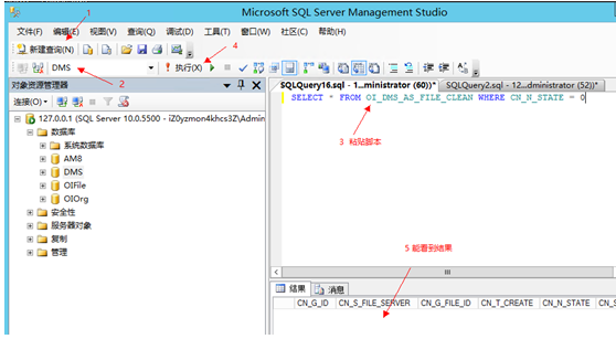 5、鍵入 sqlserver管理器 查詢需要刪除的文件列表